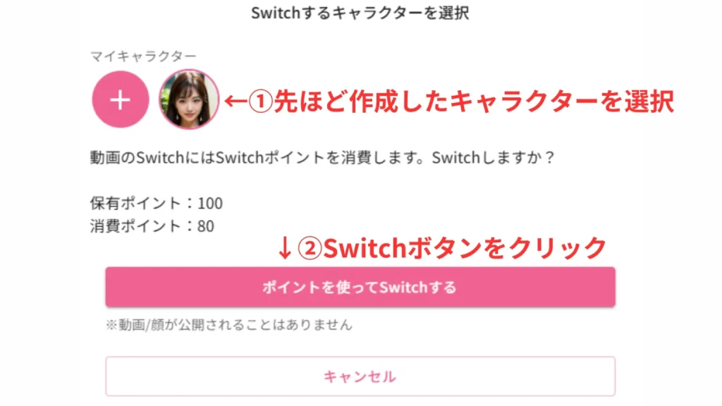 また、FaceSwtichは動画の顔入れ替えサービスのため、AI美女をプロンプトから生成したり、生成したAI美女と会話したりする機能はありません。※2025年9月時点