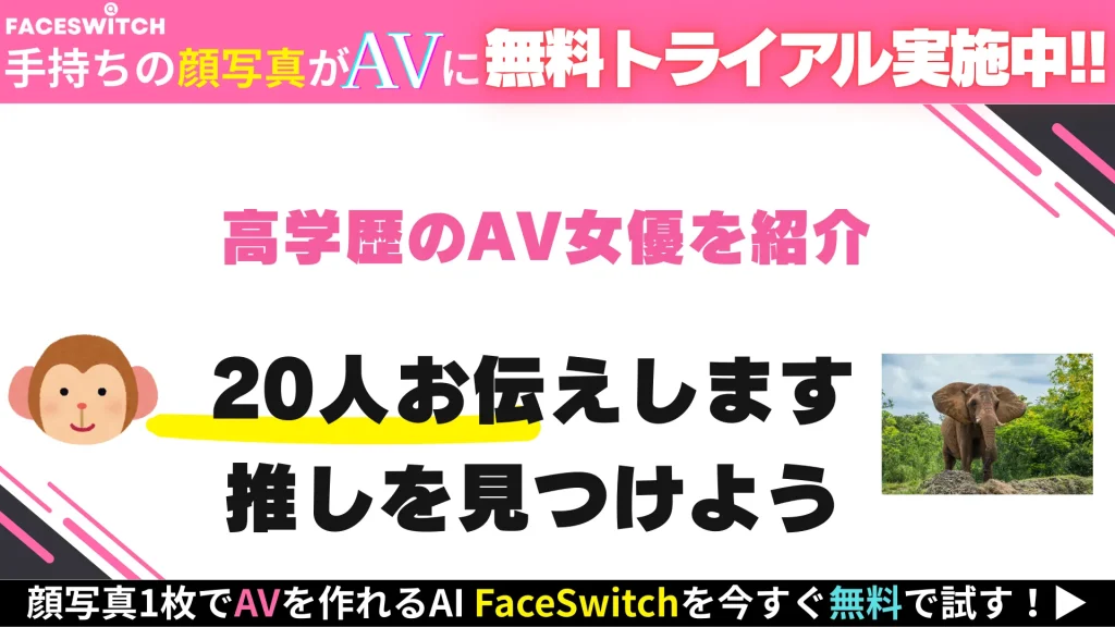 今回ご紹介した高学歴AV女優のはしたない動画を自分好みにカスタマイズするならFaceSwtich一択です。
