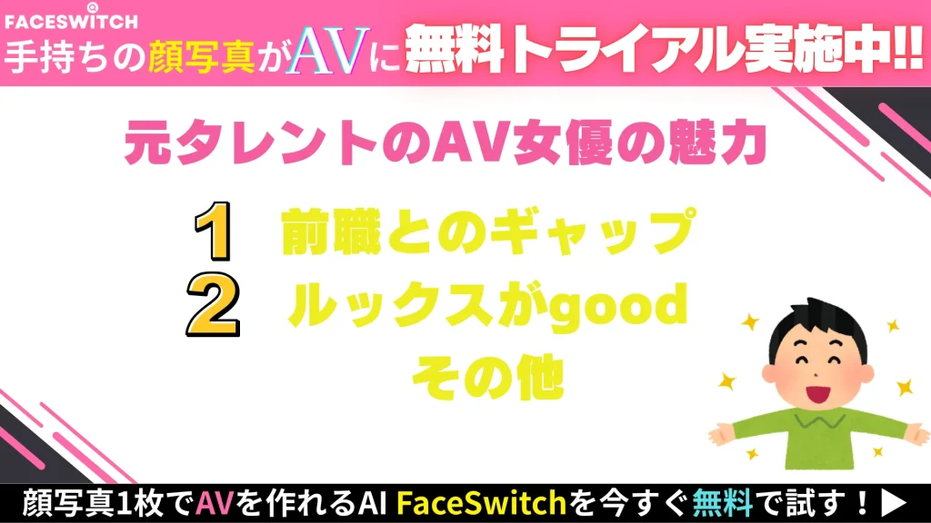 特にFaceSwitchは海外サービスが跋扈するAIアダルト業界内で一際注目を浴びている国産のサービスです。