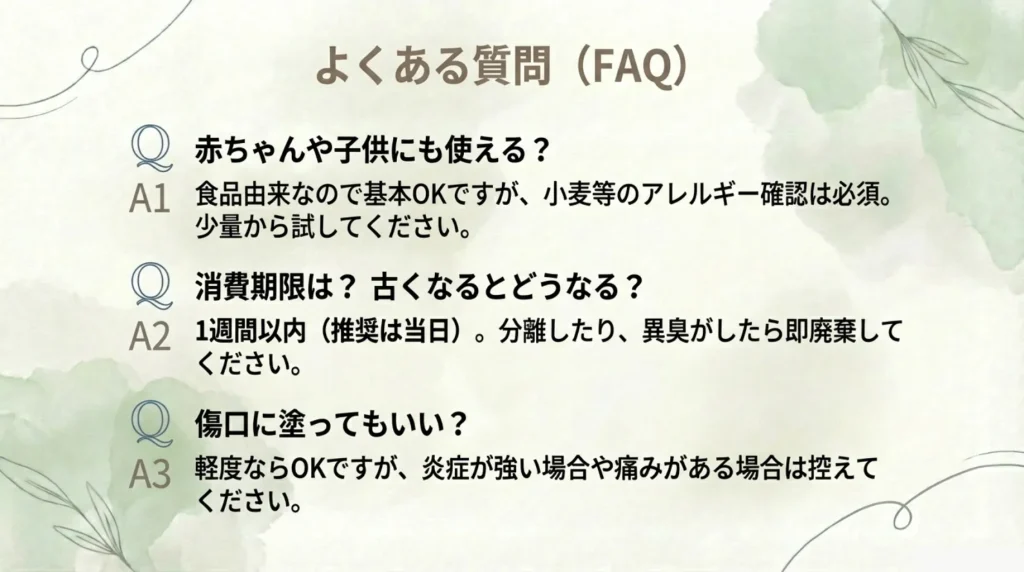 でんぷん由来のとろみは保湿感を与えますが、肌の状態や体質によっては違和感を覚える場合もあります。使用前には特徴を理解し、少量から試すことが重要です。